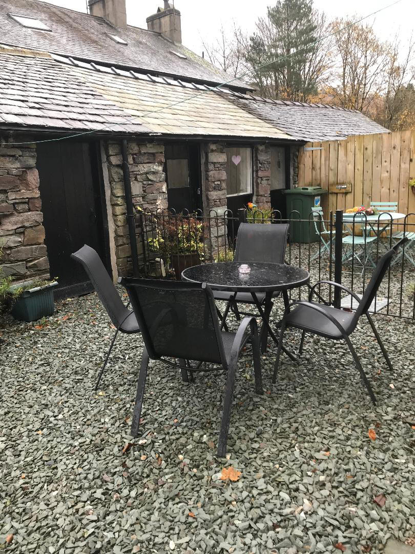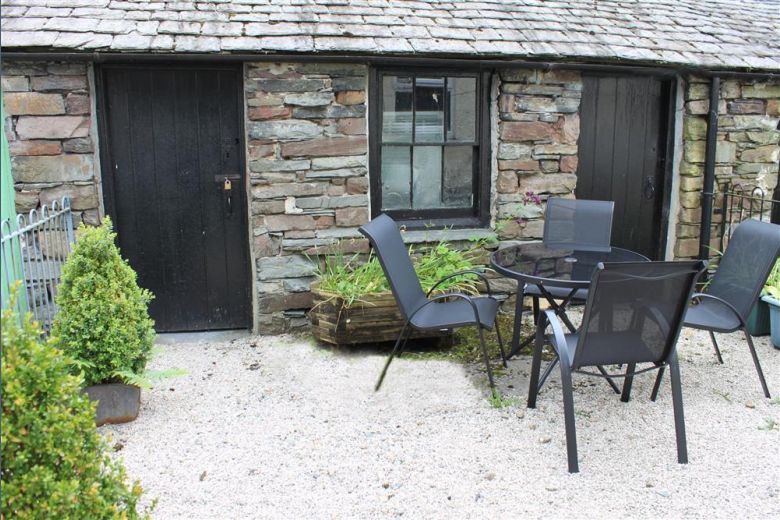 The small but secure yard to the rear gives access to the main outbuilding and the coal store. Garden furniture is provided.