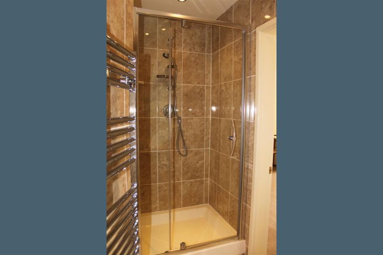 Along the landing is the Master Bedroom facing west with views of the fells. The huge floor to ceiling mirrored wardrobes reflect those views and give adequate storage. This bedroom with king size bed has personal fully tiled en-suite shower (huge) and WC with wash basin. Digital TV.