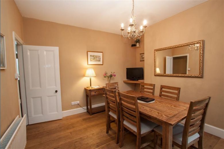 The Dining Room is off the hall and has new polished solid oak floor, substantial dining table and window looking onto the garden and patio and beyond towards Wansfell. Digital TV.