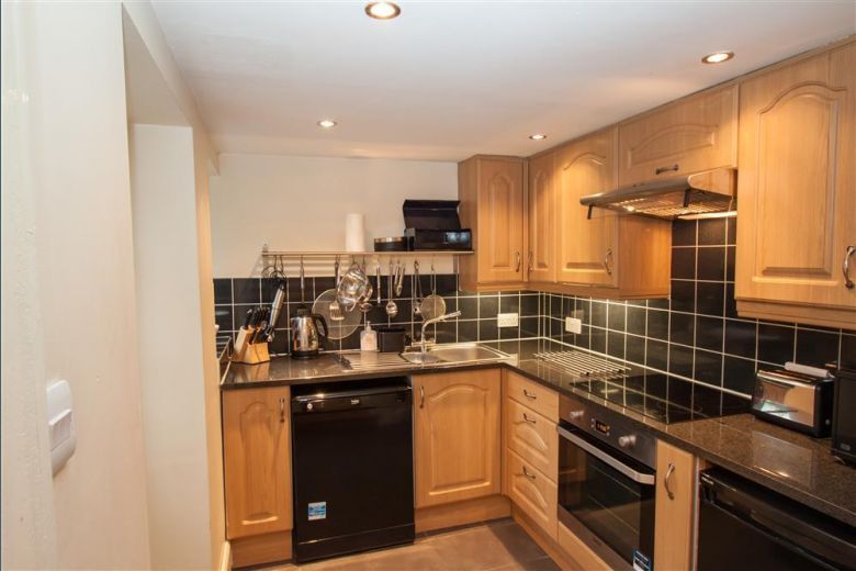 The Kitchen leads off the dining room and is fully fitted with granite work topped units with dishwasher and fridge amongst the many appliances. The slate floored kitchen leads into a rear garden with views of the fells.