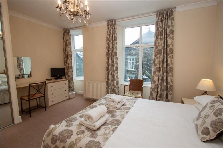 On the second floor the Front Bedroom again has another huge floor to ceiling mirrored wardrobes reflect those views and give adequate storage. This bedroom with king size bed has additional natural light from a Velux window with views of Loughrigg. Digital TV.