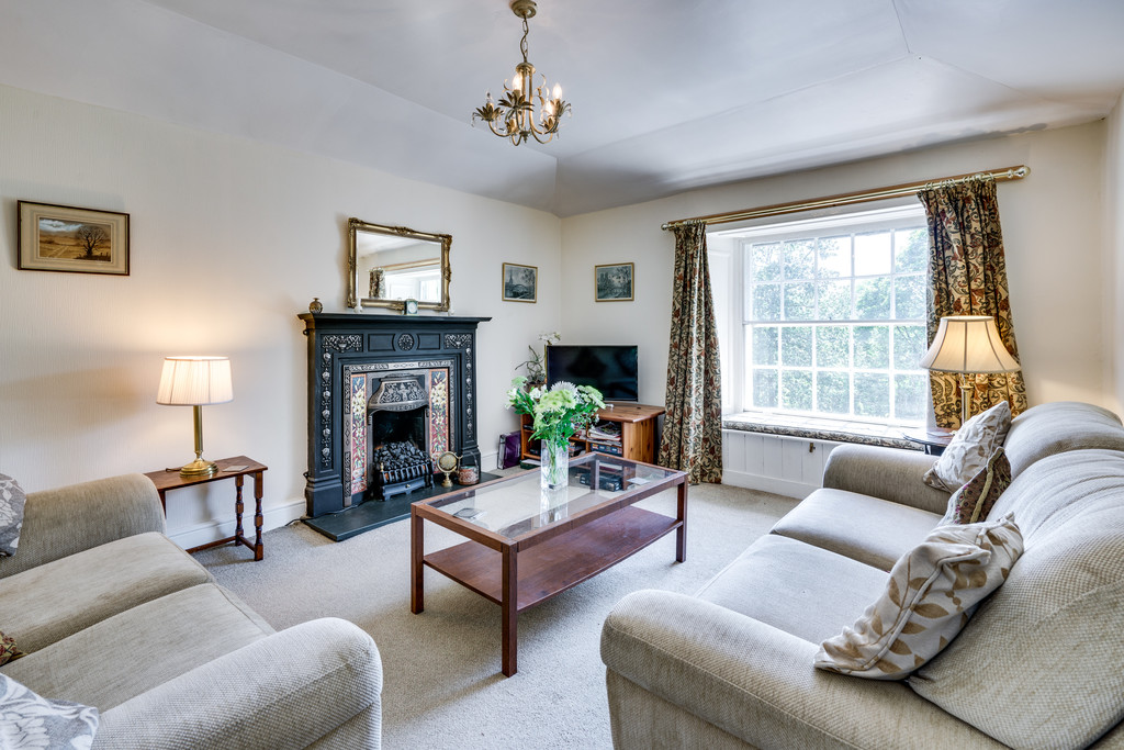 The elegant and spacious lounge is beautifully furnished with deep cushioned sofas, Victorian fireplace with living flame electric fire, deep window seat, and Laura Ashley colour scheme. A wide screen digital TV with satellite channels are provided.